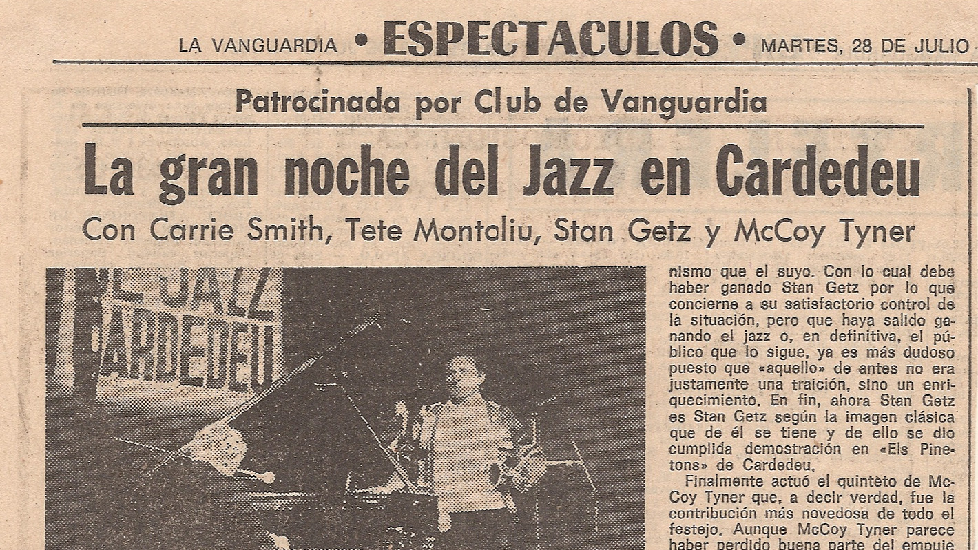 Se llevó a cabo con gran éxito la gran noche de jazz en cardedeu, (...). Se vivió una experiencia de interés musical óptimo (...) Alrededor de tres mil espectadores disfrutaron del excelente caudal de jazz contemporáneo que desde el escenario se ofrecía (...). Entre carrie Smith, Tete Montoliu, Stan gets y McCoy Tyner y sus respectivos músicos acompañantes, la noche de Cardedeu fue jazzísticamente muy fecunda.
